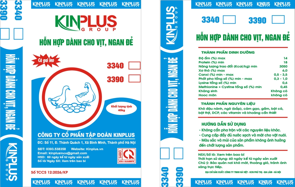 Sản phẩm K-3390SĐK3340: HH đặc biệt dành cho vịt, ngan đẻ cao cấp