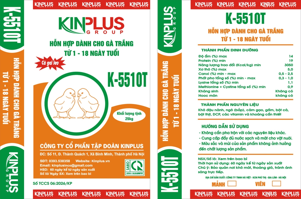 Sản phẩm: K - 5510T HH gà trắng từ 1 - 18 ngày tuổi
