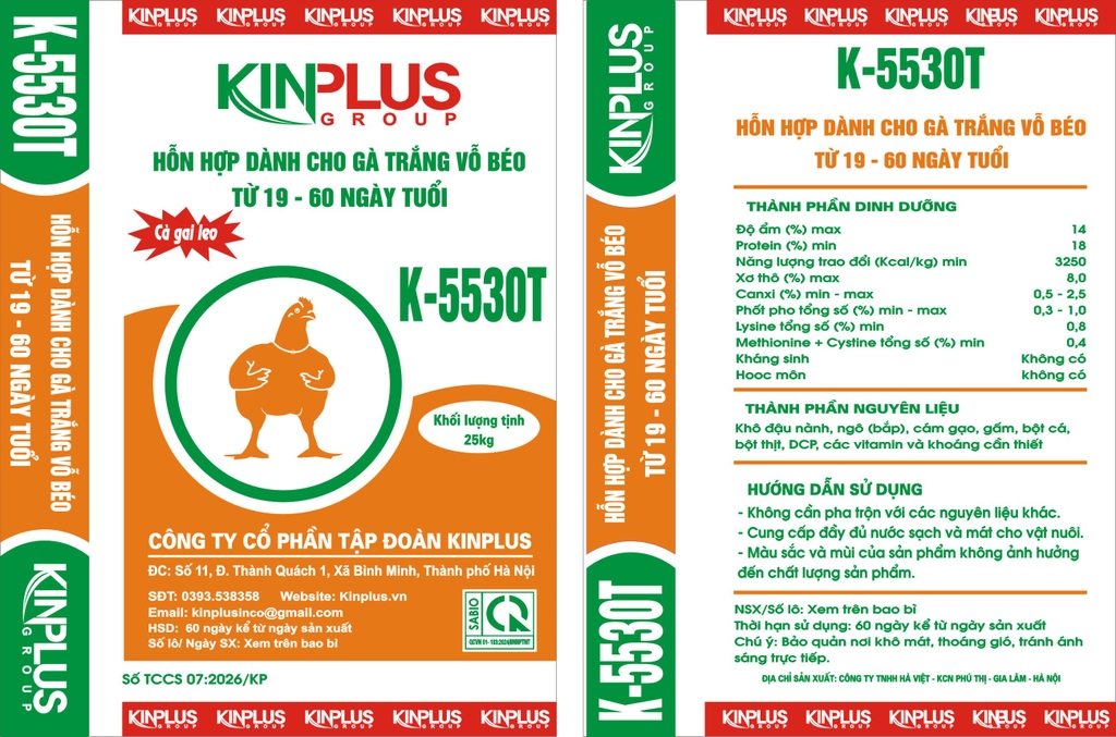 Sản phẩm: K - 5530T HH gà trắng vỗ béo từ 19 - 60 ngày tuổi